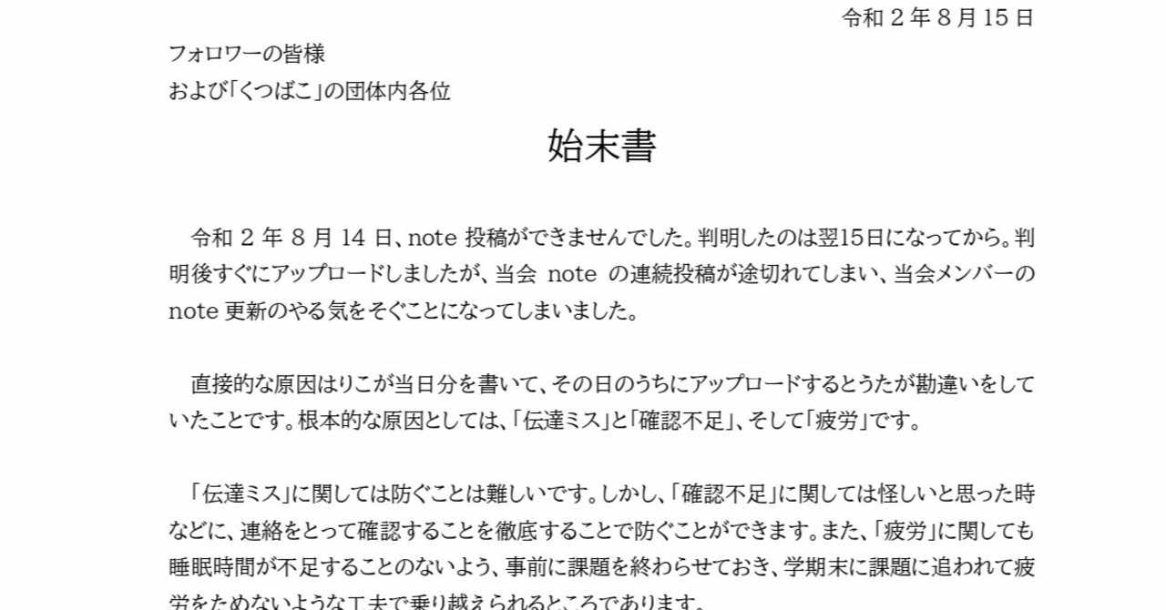 始末書 の新着タグ記事一覧 Note つくる つながる とどける
